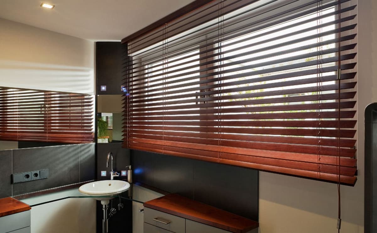 - Прочность и долговечность. Деревянные жалюзи изготавливаются из прочных пород дерева, устойчивых к деформации. Дополнительная обработка, покрытие лаком или краской обеспечивают защиту от влаг и ультрафиолета. При правильном уходе жалюзи будут служить долгие годы (10−15 лет и более).
